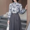 Phần cổ tròn viền bản lớn mang nét cổ điển tinh tế, tay dài phồng nhẹ bo cổ tay giúp tôn lên vẻ thanh lịch. Phối cùng quần âu đen lưng cao tạo cảm giác chỉn chu, tôn dáng và dễ ứng dụng trong môi trường công sở hoặc các buổi gặp gỡ, sự kiện trang trọng.