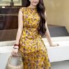 Họa tiết hoa nhỏ gam pastel – dịu dàng nhưng không nhạt nhòa, điểm nhấn hoa 3D eo tinh tế – đủ làm bạn nổi bật trong ánh nắng ban mai.